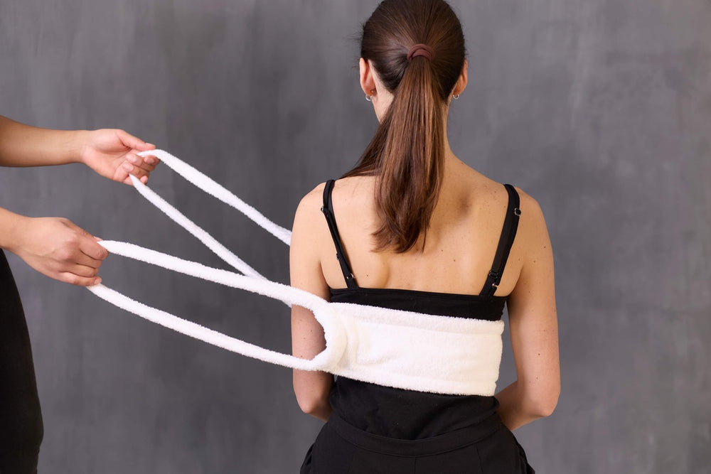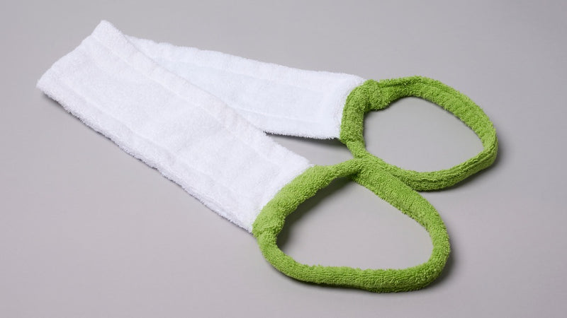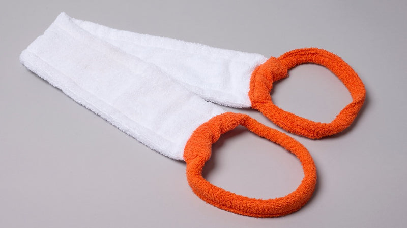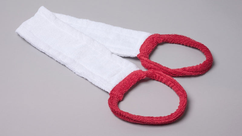 Flere av våre ergonomiske, hygieniske kluter er utstyrt med lange håndtak (35 cm på hver side), spesielt utviklet for assistert pleie. Den innovative designløsningen gjør det mulig for helsepersonell å utføre kroppsvask uten å måtte benytte ensidige og gjentagende bevegelser av hånd, noe som reduserer risikoen for belastningsskader i nakke, skuldre, albuer og håndledd.